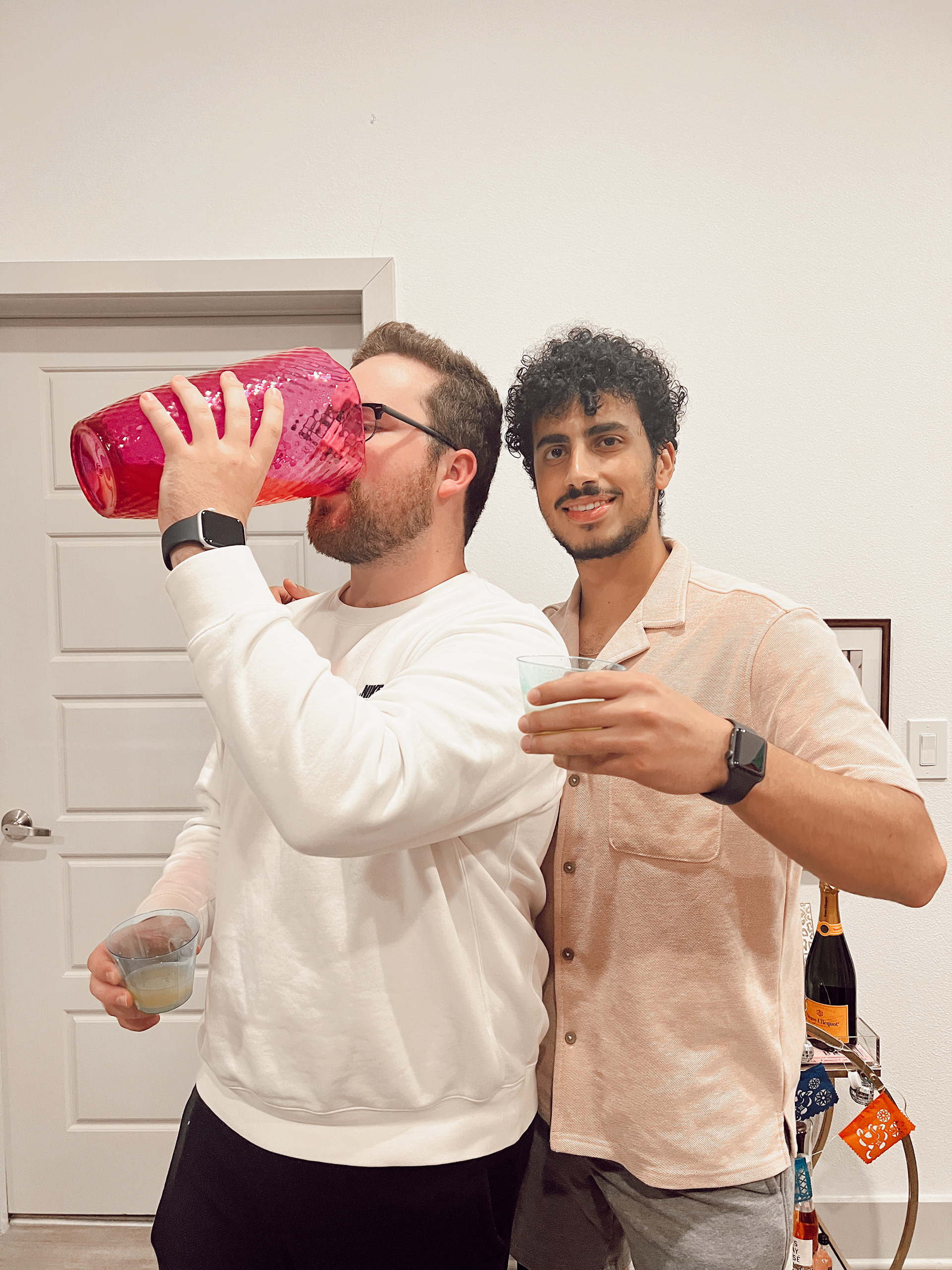 For this party we held a margarita competition. Not only was this a BLAST but it was great because each pair was in charge of bringing one drink per person. Doing it this was was a lot less work and a lot less money than one person being in charge of providing the alcohol and was a lot more fun than just beers/ seltzers. Everyone got super into it (the guys even had a trial run the day before - lol) and everyone gave a fake speech about what inspired their creation. It was such a fun party activity and is still something we all talk about!